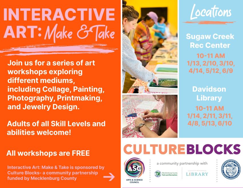 Presented by Moving Spirits When: January through March (5-7pm) Where: University City Regional Library (5528 Waters Edge Vlg Dr, Charlotte,...
